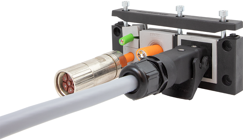 The cable entry enables the entry, sealing and strain relief of cables with and without connectors, with cable diameters from 1 to 15 mm, in accordance with DIN EN 62444. 3A or 4A industrial connectors are plugged directly onto the frame.
